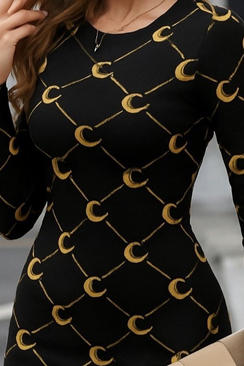 Kadın Uzun Kollu Bisiklet Yaka Desenli Viskon Iki Iplik Bluz