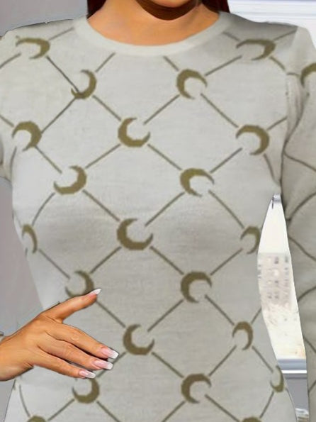 Kadın Uzun Kollu Bisiklet Yaka Desenli Viskon Iki Iplik Bluz