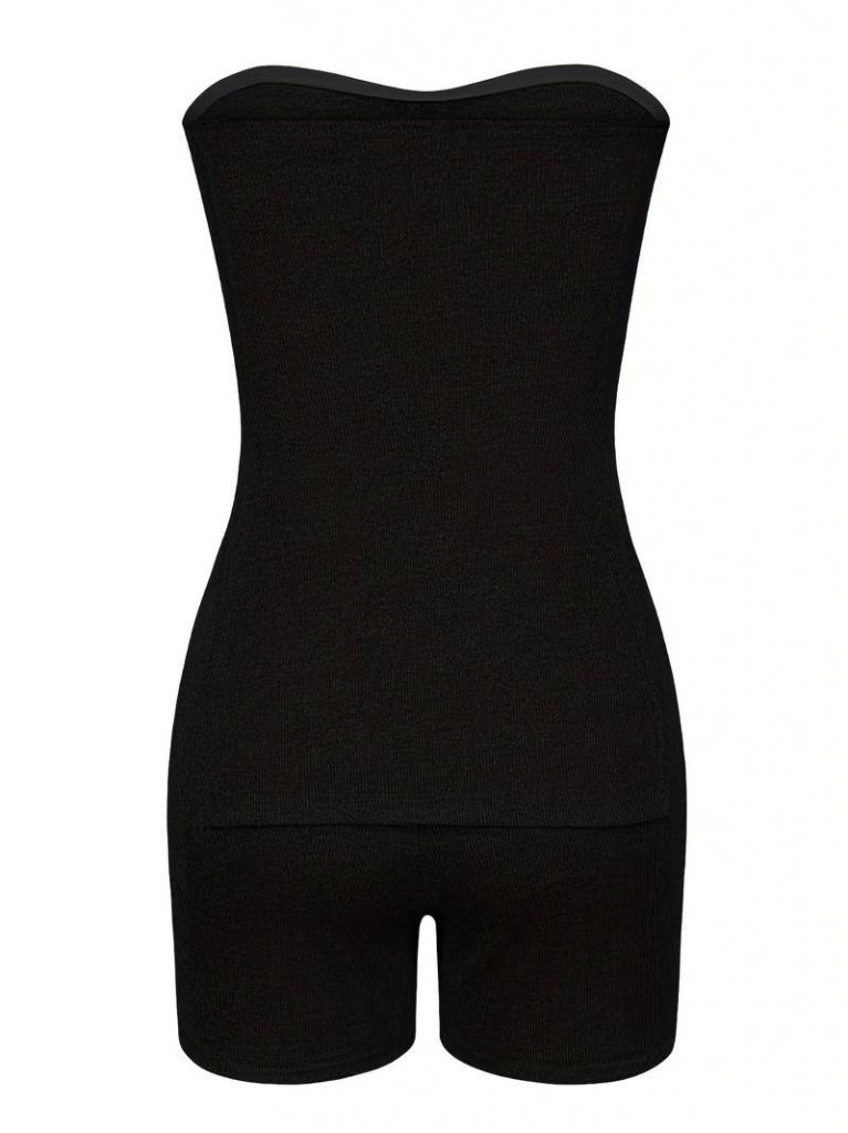 Kadın Iki Yanı Yırtmaçlı Straplez Bluzmini Tayt Kaşkorse Ikili Takım