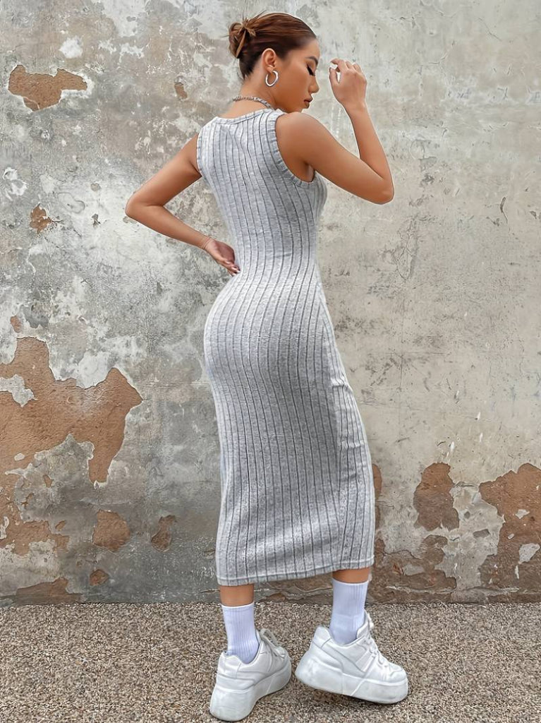 Kadın Kalın Askılı Kare Yaka Fitilli Kaşkorse Midi Boy Elbise