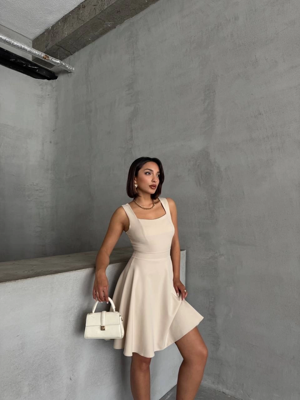 Kadın Madonna Mendil Yaka Fırsat ürün Büzgülü Mini Elbise