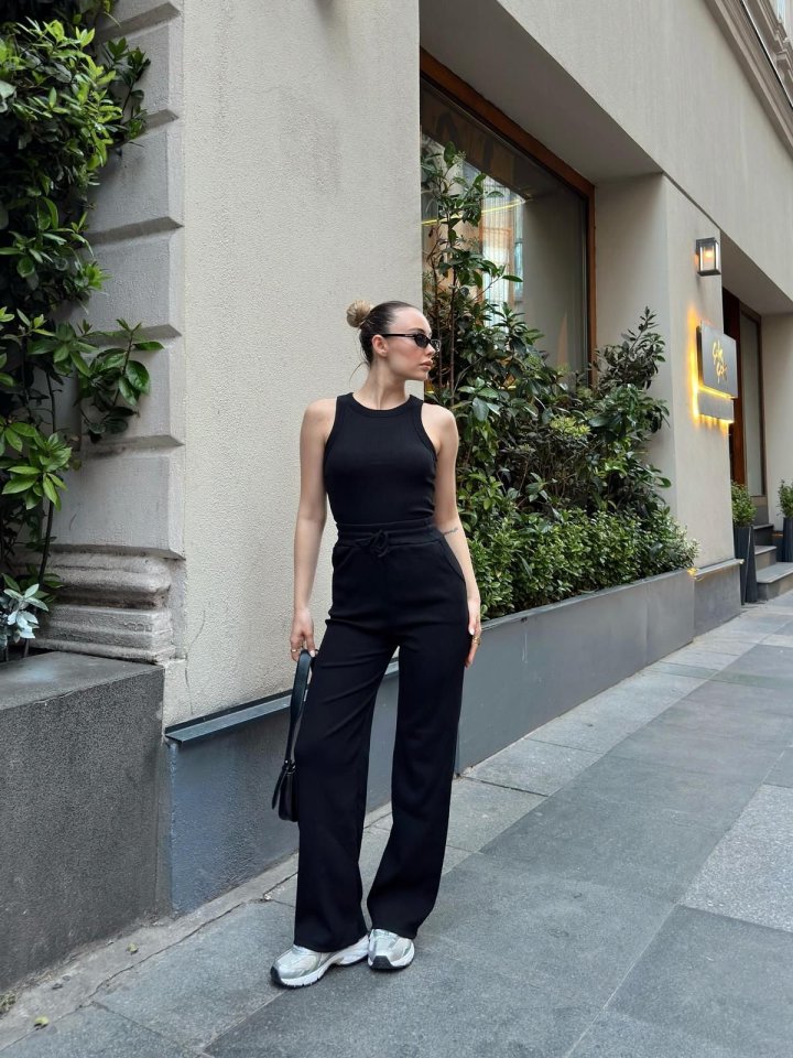 Kadın Kaşkorse Kumaş Atlet Ve Yüksek Bel Bol Paça Pantolon Ikili Takım