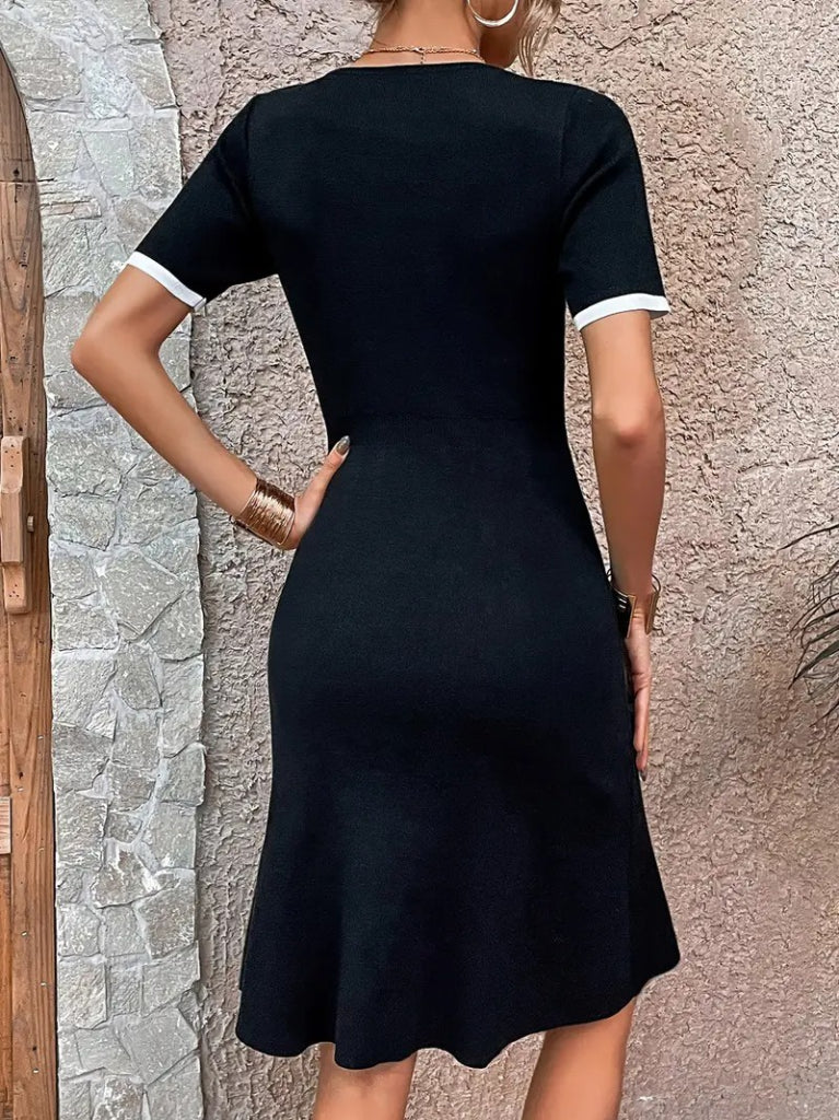 Kadın Kısa Kollu Yakadan Ve Etekten Fermuarlı Midi Viskon Iki Iplik Elbise
