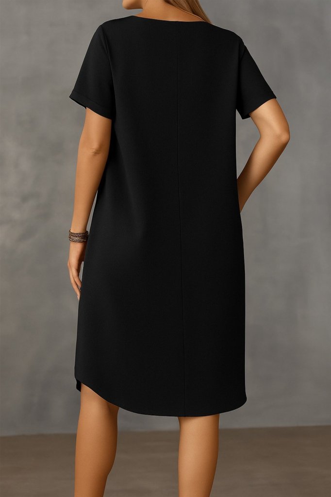 Kadın Kısa Kollu Yakadan Ve Etekten Fermuarlı Midi Viskon Iki Iplik Elbise