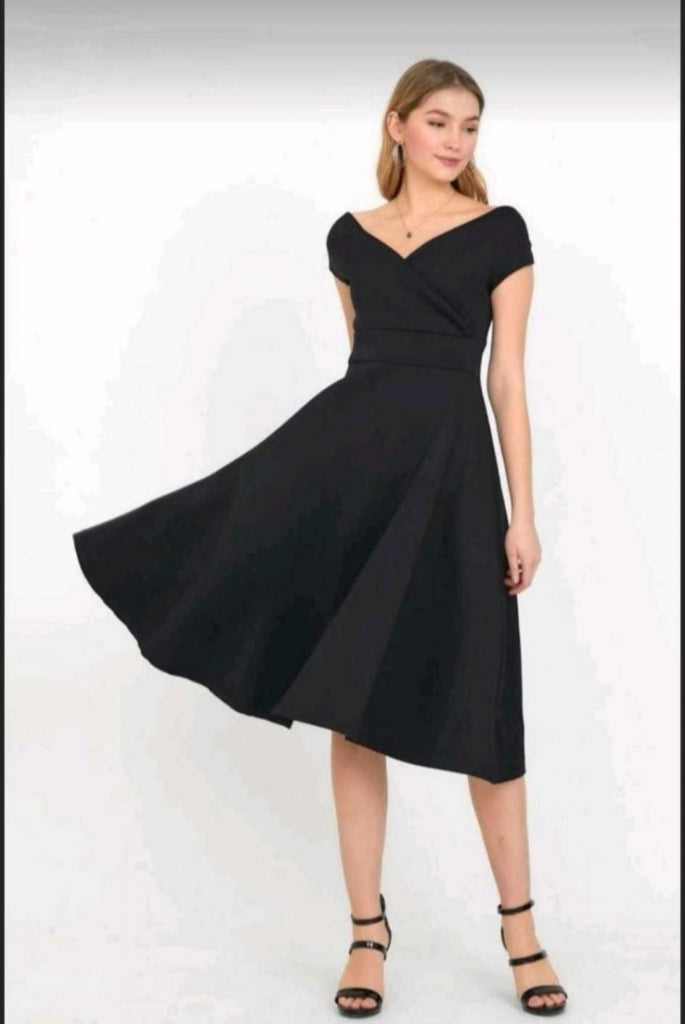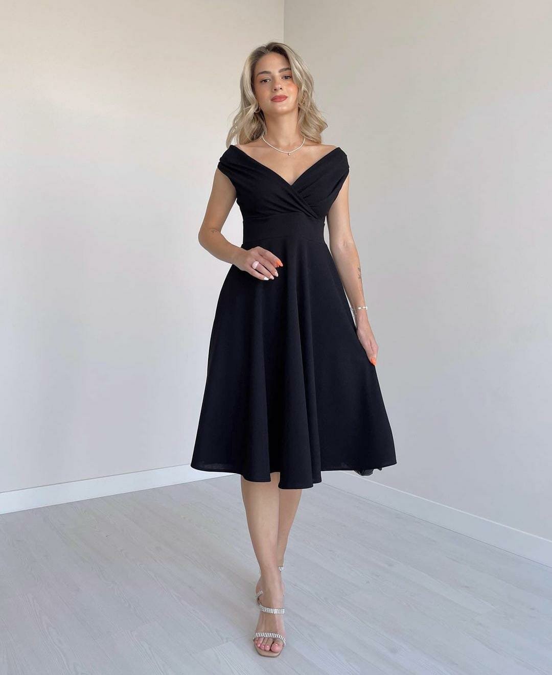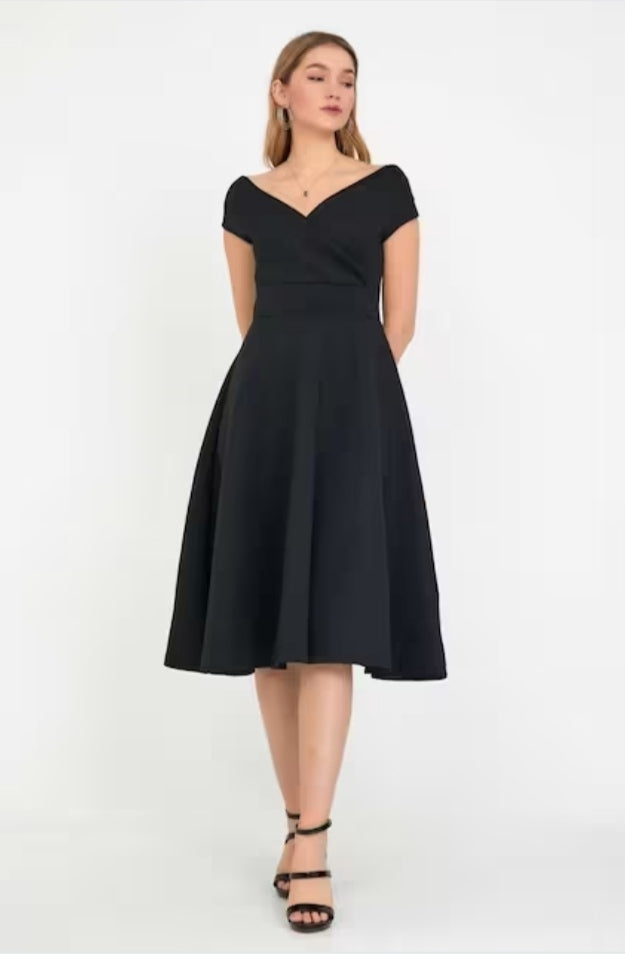 Kadın Kısa Kollu Yakadan Ve Etekten Fermuarlı Midi Viskon Iki Iplik Elbise