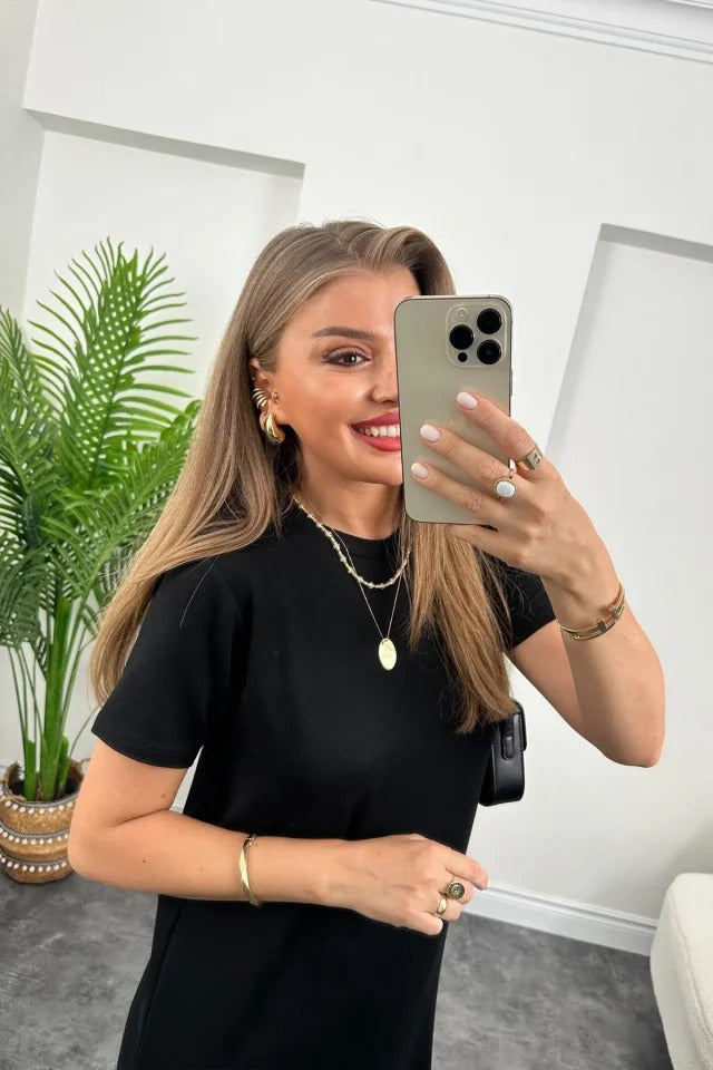 Kadın Kısa Kollu Yırtmaç Detaylı Salaş Viskon Elbise