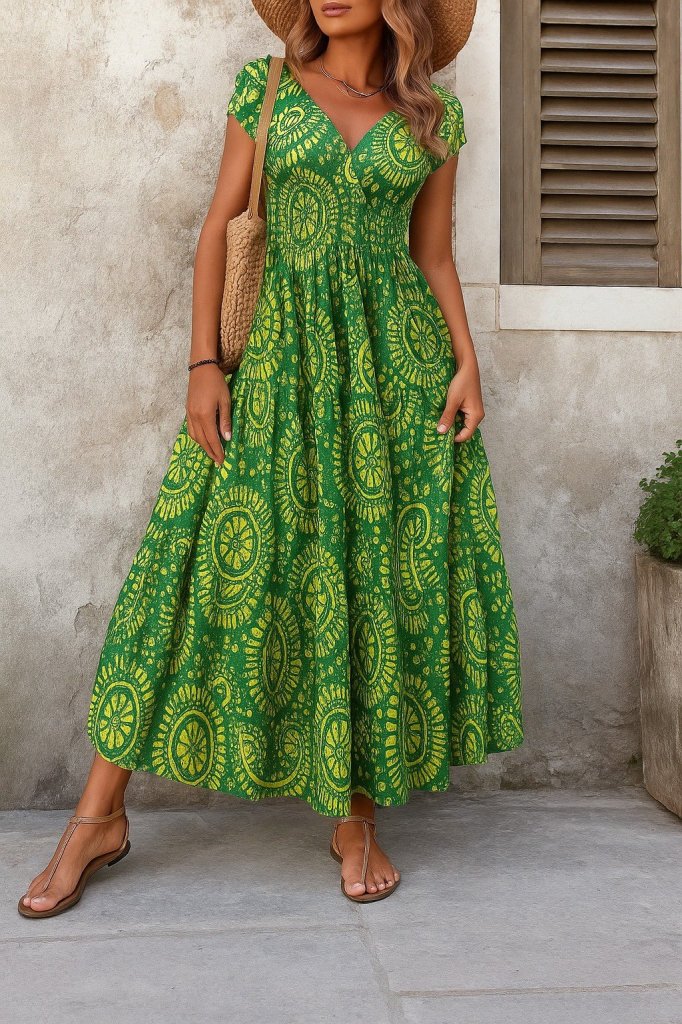 Kadın Kısa Yarasa Kanat Kollu V Yakalı Beli Büzgülü Süprem Elbise
