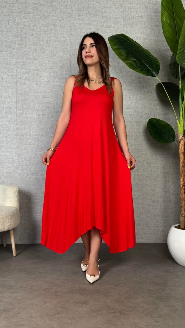 Kadın Omuz Askılı Toka Detay Maxi Boy Elbise