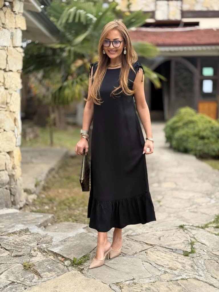 Kadın Kısa Kollu Yakadan Ve Etekten Fermuarlı Midi Viskon Iki Iplik Elbise