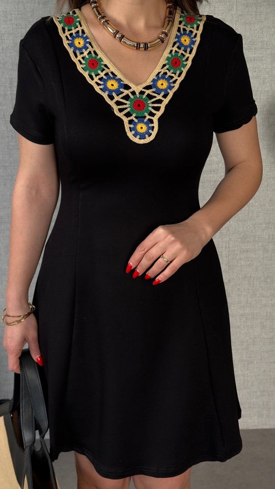 Kadın Penye Kumaş Çiçek Desenli Nakışlı Elbise
