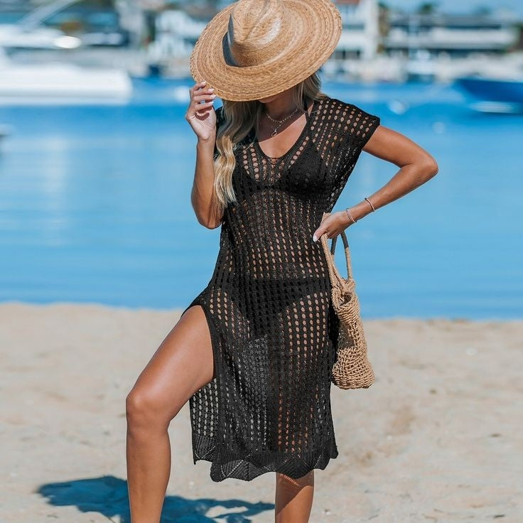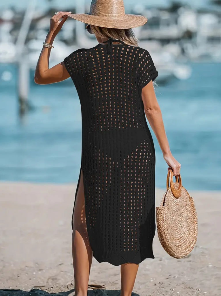 Kadın Sıfır Kol V Yaka Yanı Derin Yırtmaçlı Midi Boy Triko Elbise