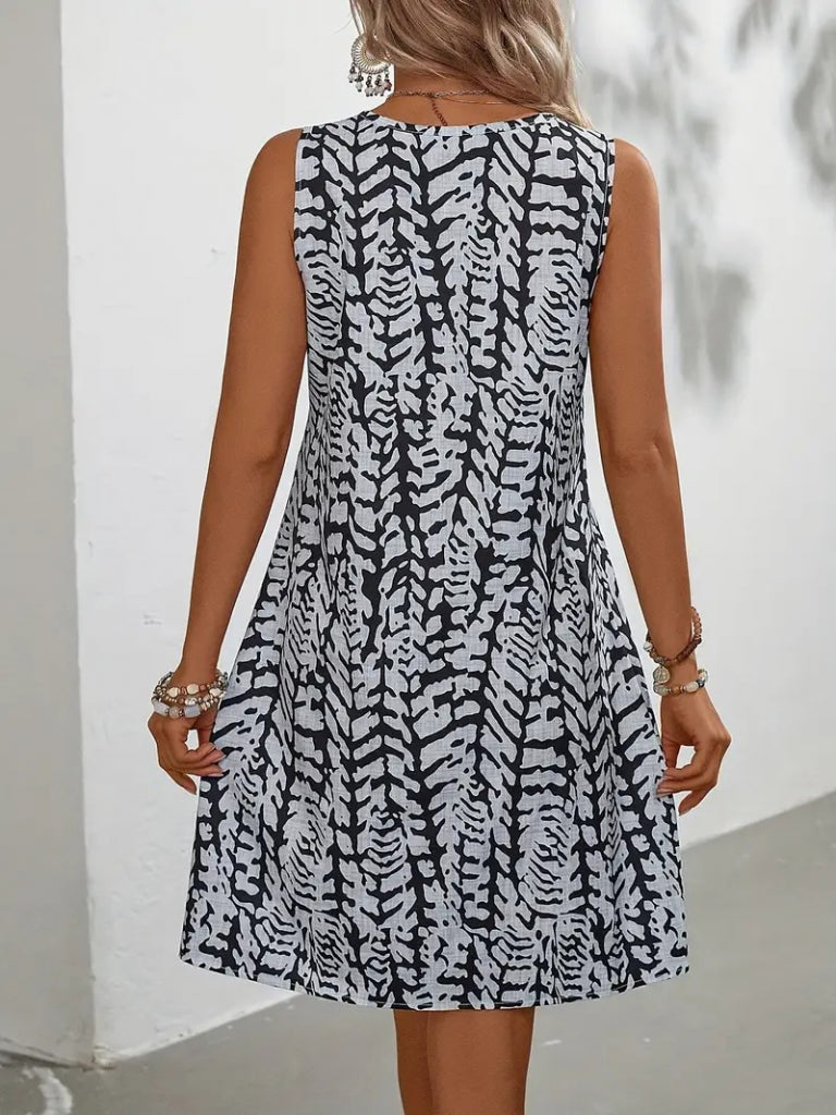 Kadın Sıfır Kol Yakadan Halka Detaylı Desenli Kısa Bürümcük Elbise