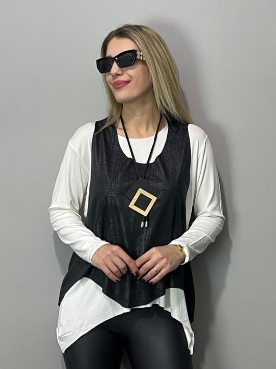 Kadın Uzun Kollu Tek Omuz Askı Detay Salaş Viskon Iki Iplik Bluz