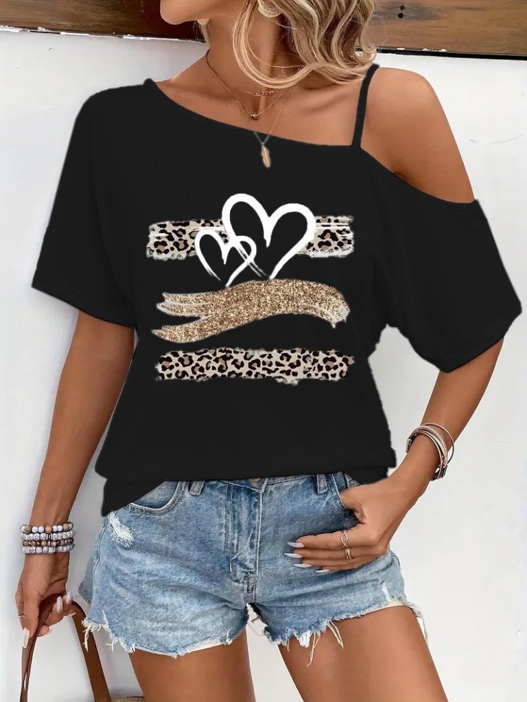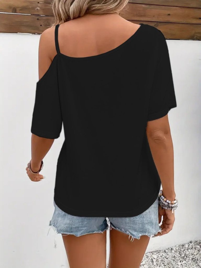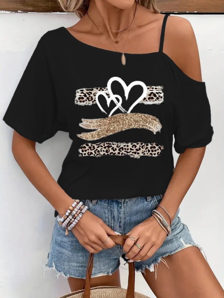 Kadın Tek Omuzu Açık Ip Askılı Baskılı Viskon Bluz