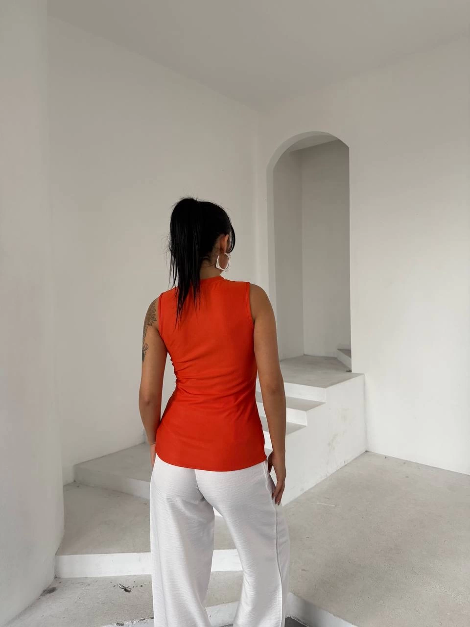 Kadın Kolsuz Boyundan çapraz Geçirmeli Göğüs Damla Detay Kaşkorse Bluz