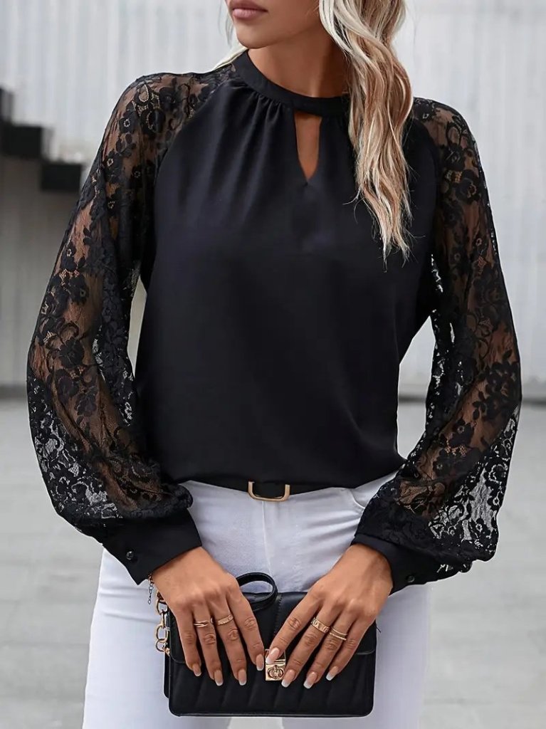 Kadın Uzun Dantel Kollu Yuvarlak Yakalı Sandy Bluz