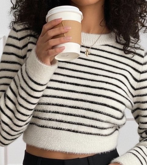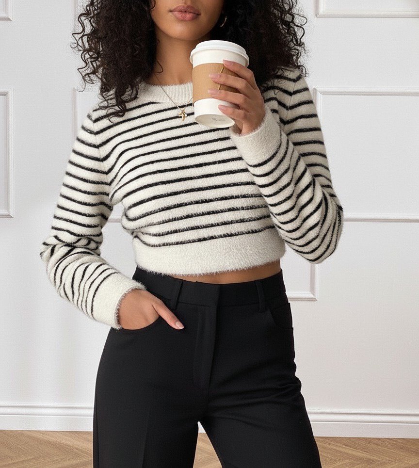 Kadın Uzun Kollu Balıkçı Yaka Crop Triko Bluz