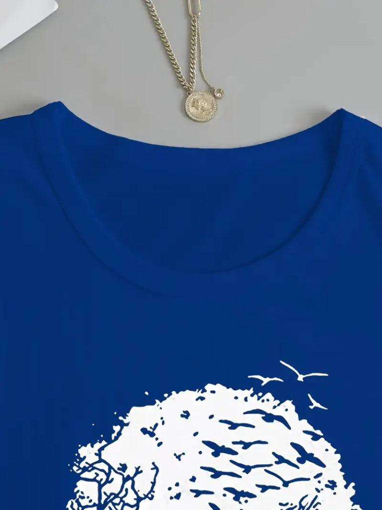 Kadın Uzun Kollu Bisiklet Yaka Ayçiçeği Desenli Viskon Bluz