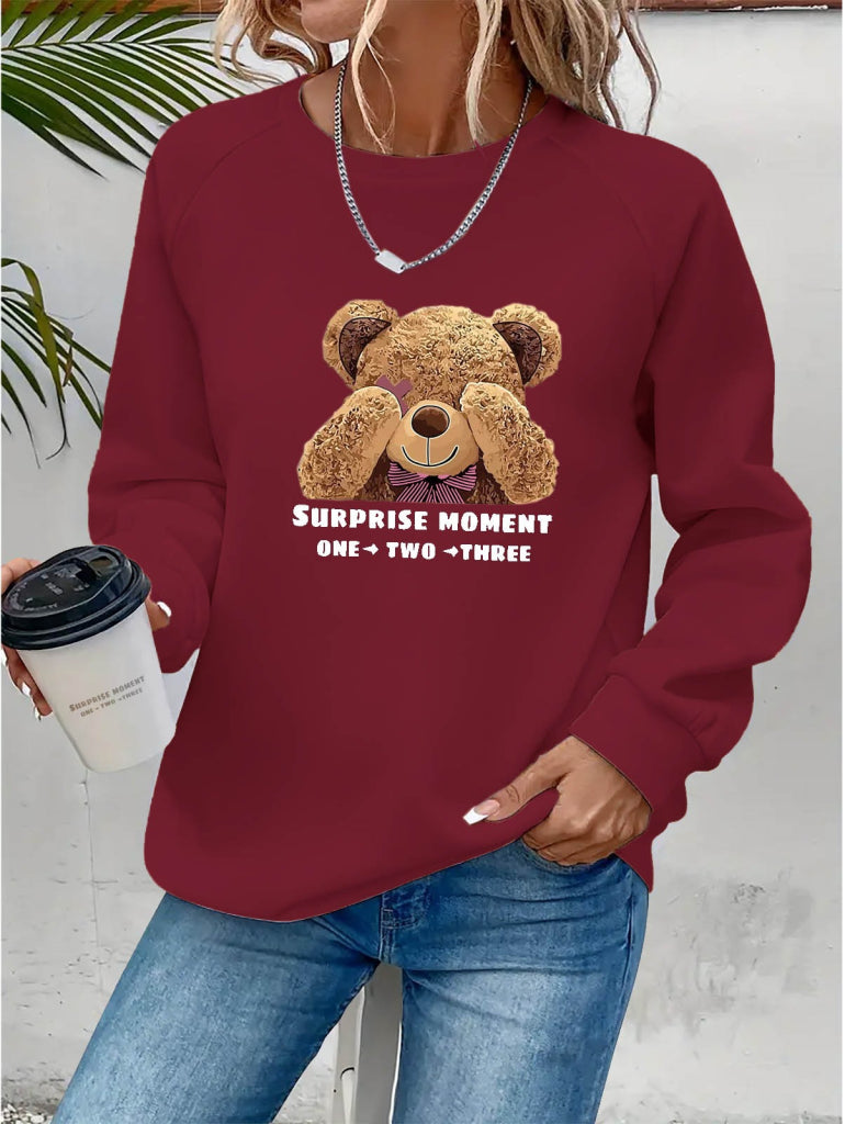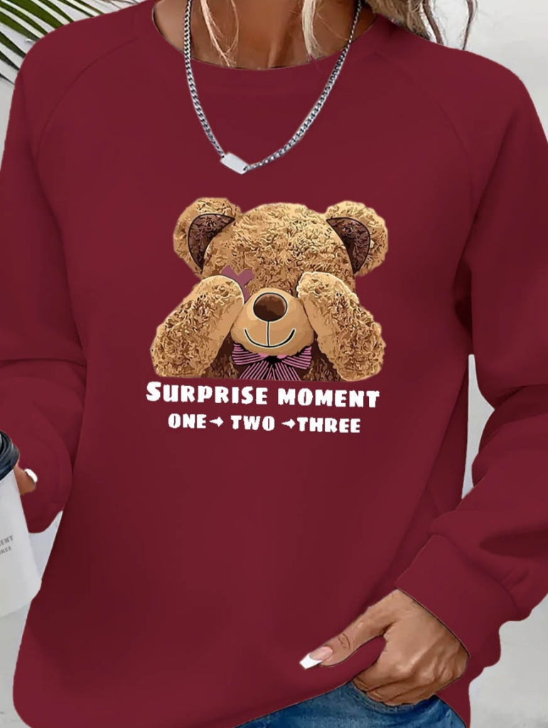 Kadın Uzun Kollu Bisiklet Yaka Ayıcık Desenli Viskon Iki Iplik Bluz