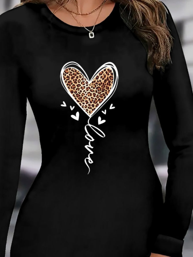 Leopar Sırt Detaylı Leopar Desenli Saten Elbise