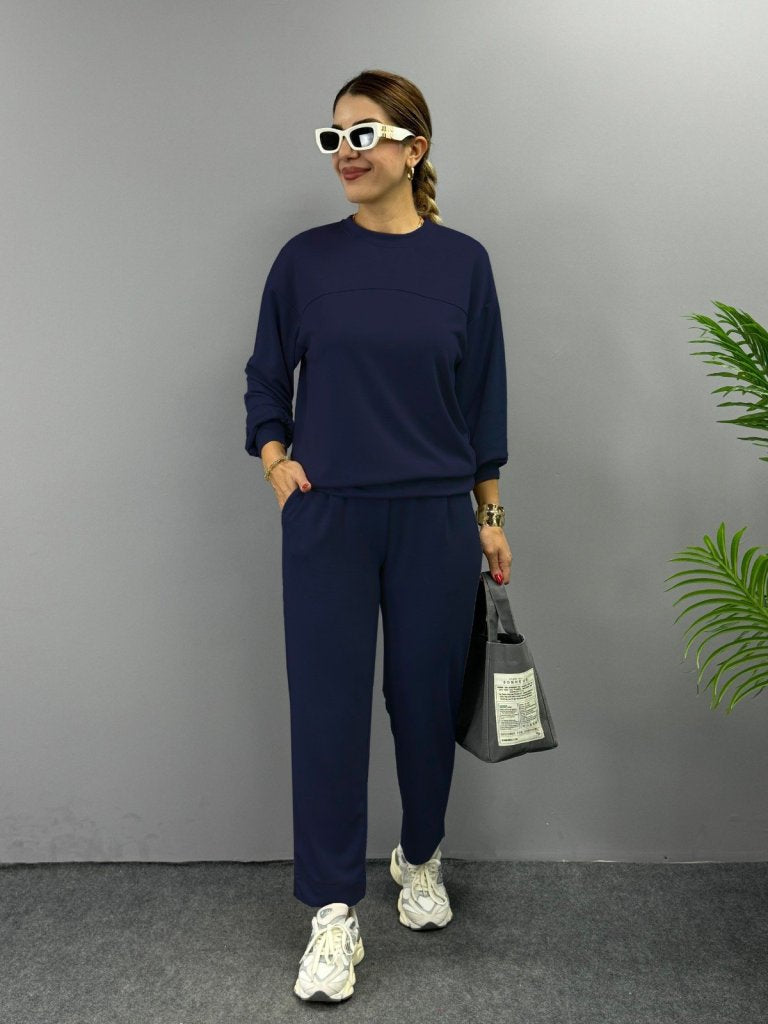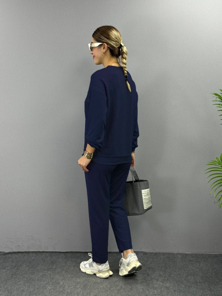 Kadın Uzun Kollu Bisiklet Yaka Viskon Iki Iplik Bluz Ve Pantolon Ikili Takım