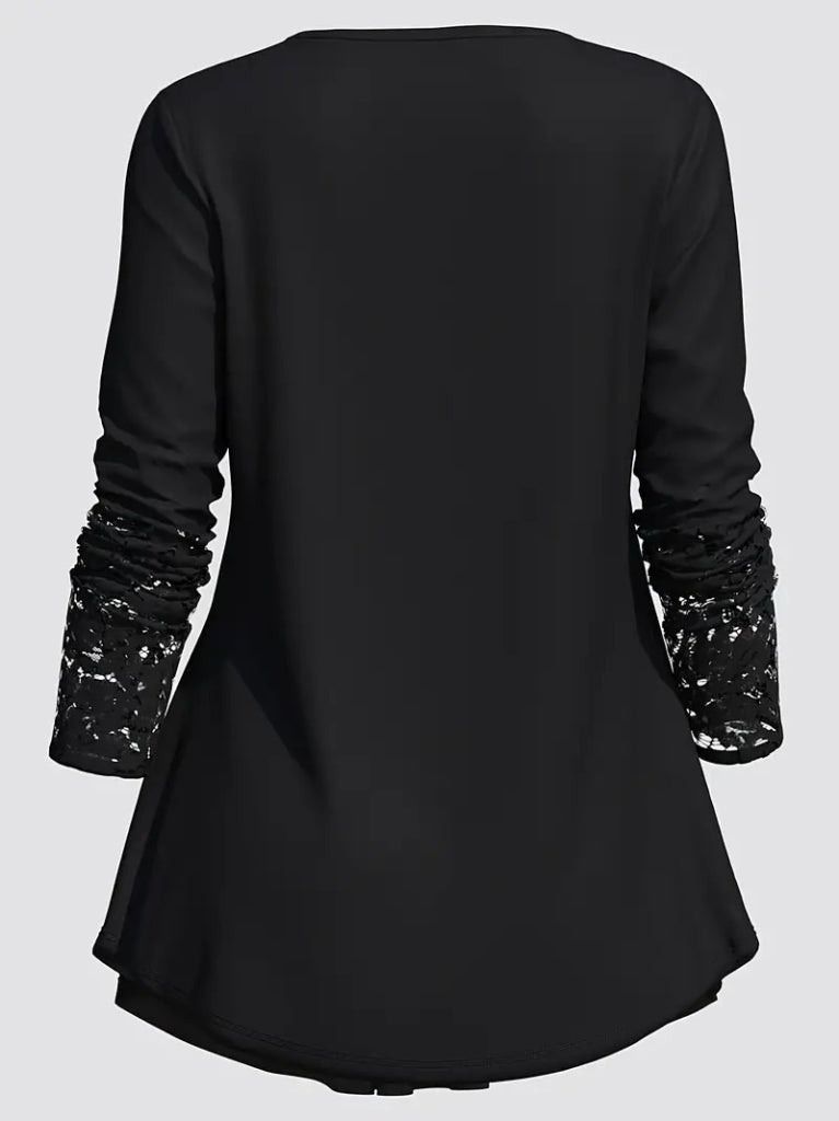 Kadın Uzun Kollu Dantel Detaylı Düğmeli Viskon Bluz