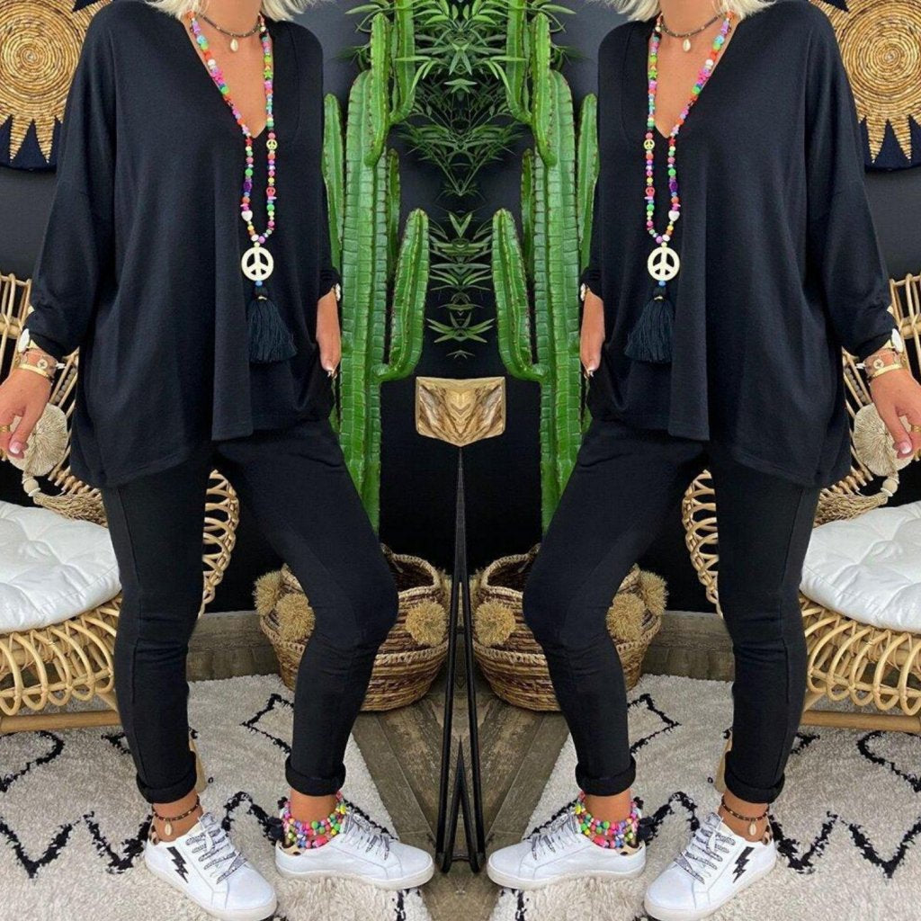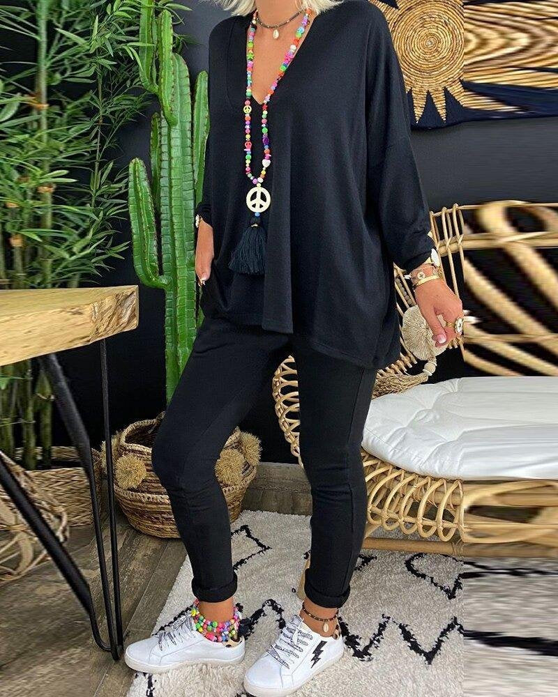 Kadın Uzun Kollu Derin V Yaka ön Kısa Arka Uzun Viskon Bluz