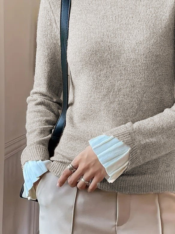 Kadın Uzun Kollu Fırfırlı Yakalı Triko Krem Bluz