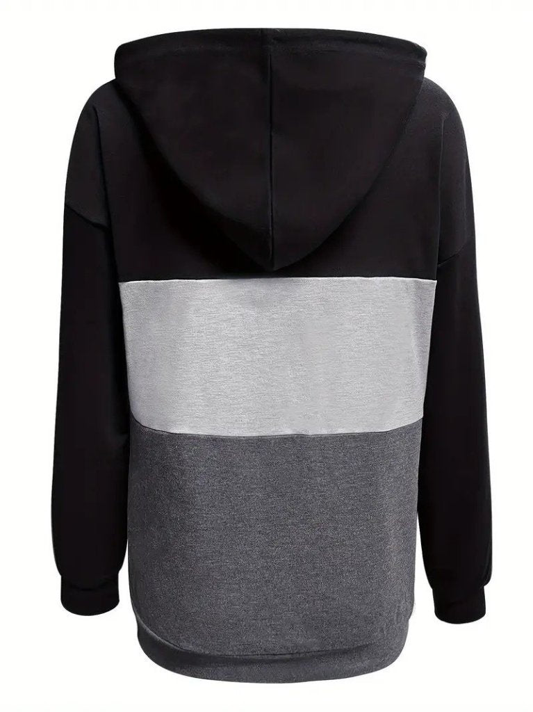 Kadın Uzun Kollu Kapşonlu çok Renkli Iki Iplik Bluz