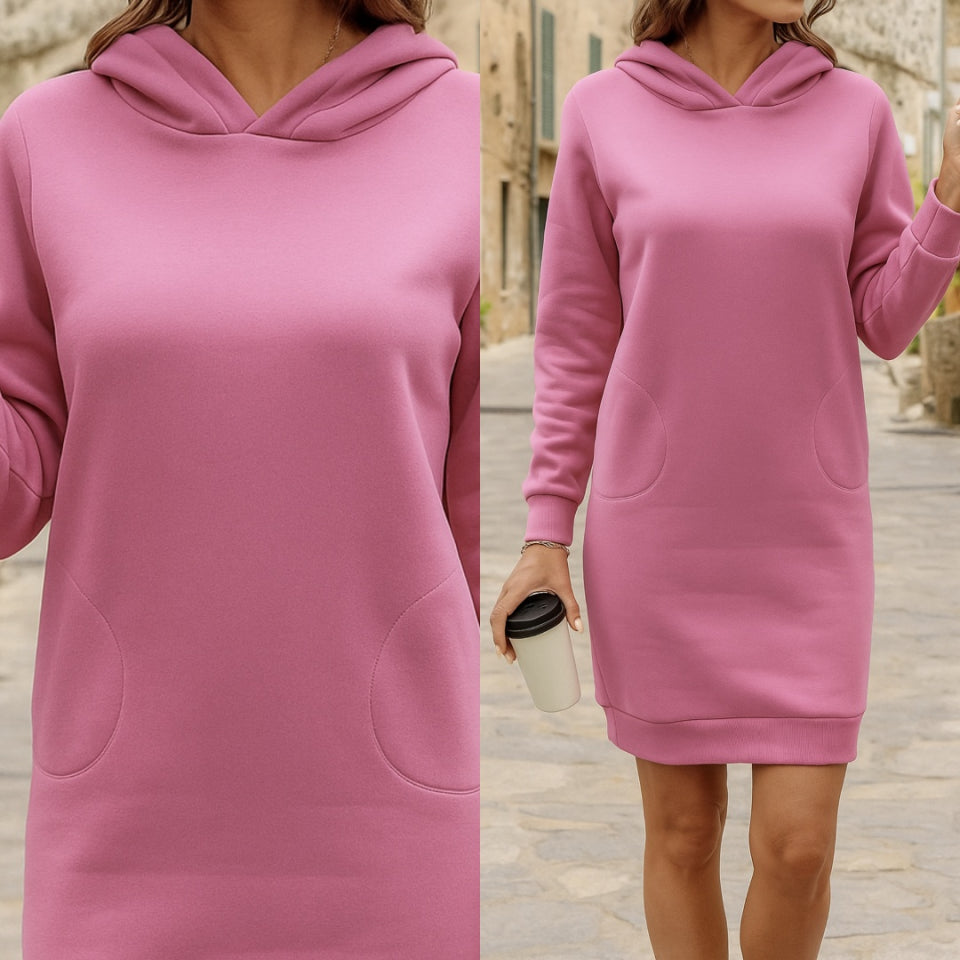 Kadın Uzun Kollu Kapşonlu Kısa Iki Iplik Elbise