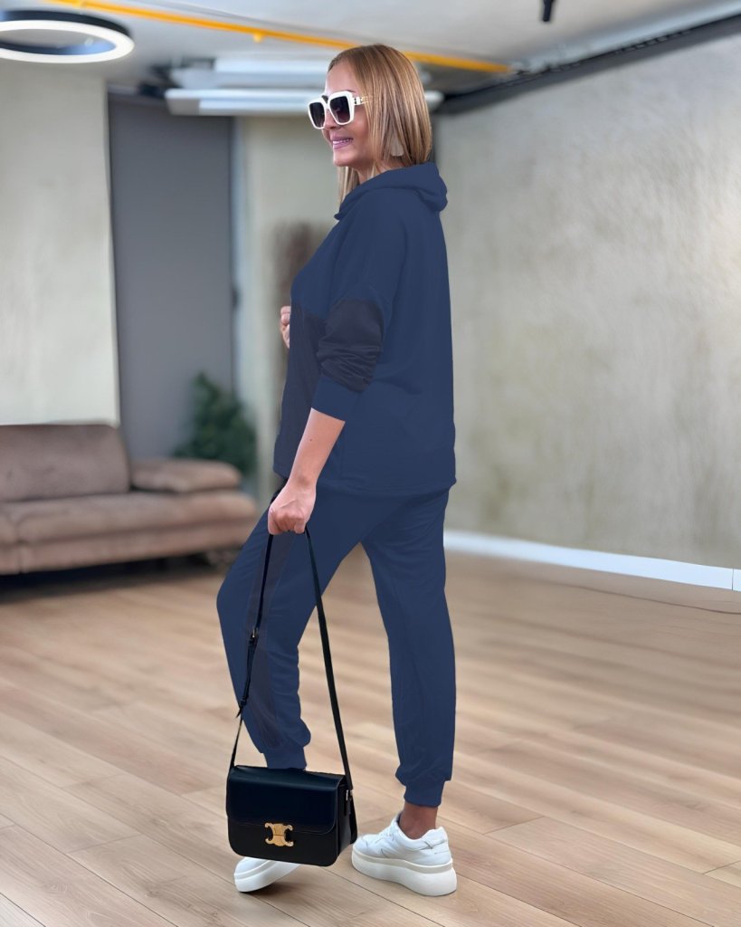 Kadın Uzun Kollu Kapşonlu Viskon Iki Iplik Bluz Ve Pantolon Ikili Takım