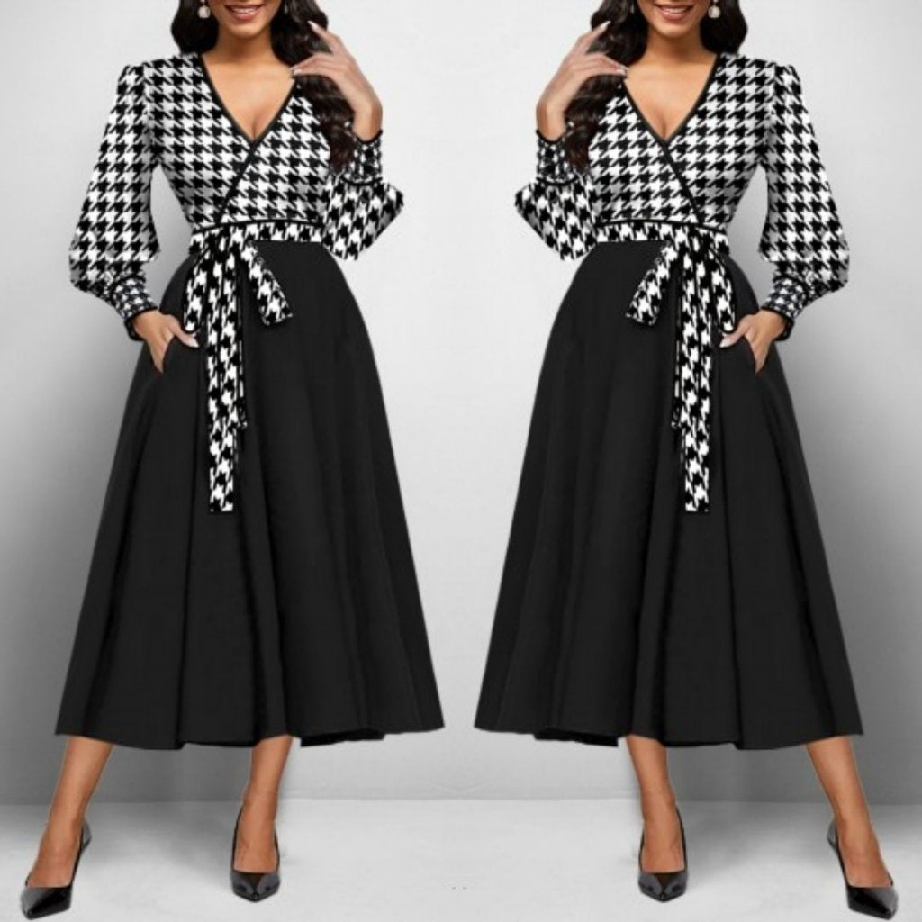 Kadın Uzun Kollu Kruvaze Yaka Dalgıç Krep Midi Boy Elbise