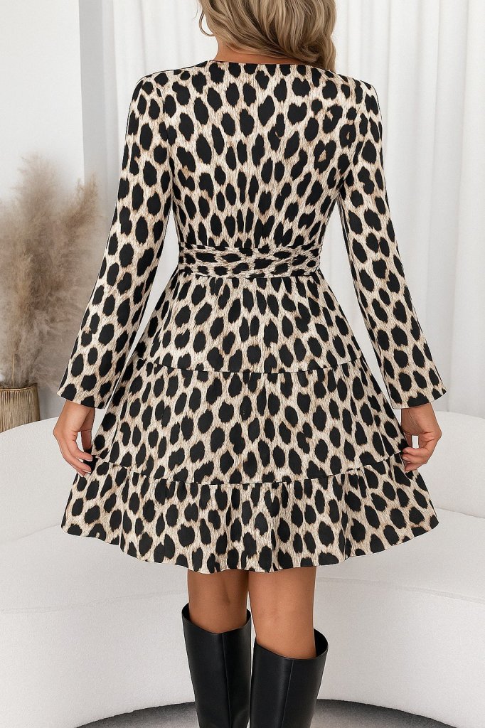 Leopar Sırt Detaylı Leopar Desenli Saten Elbise