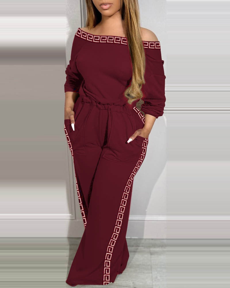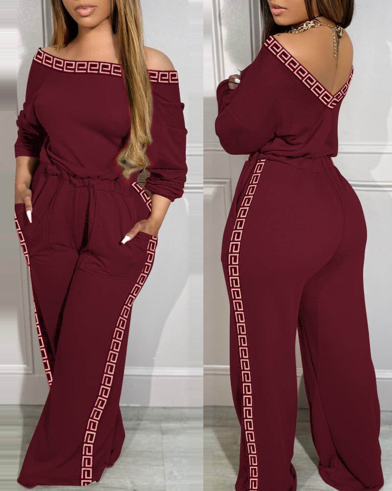 Kadın Uzun Kollu Omuzlardan Açık Beli Lastikli Cepli şerit Desenli Viskon Iki Iplik Tulum