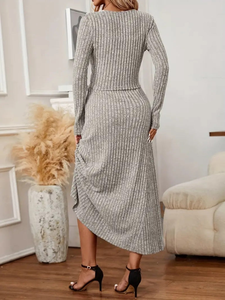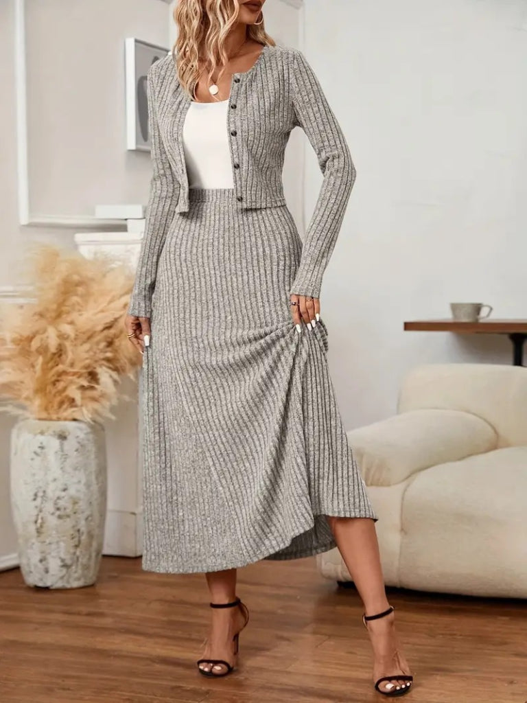 Kadın Uzun Kollu önden Düğmeli Bluz Ve Yüksek Bel A Kesim Uzun Etek şardonlu Kaşkorse Ikili Takım