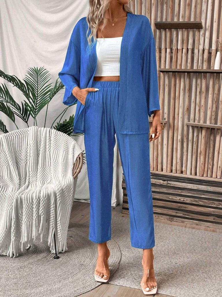 Kadın Uzun Kollu önü Açık Dokuma Ceket Ve Pantolon Ikili Takım
