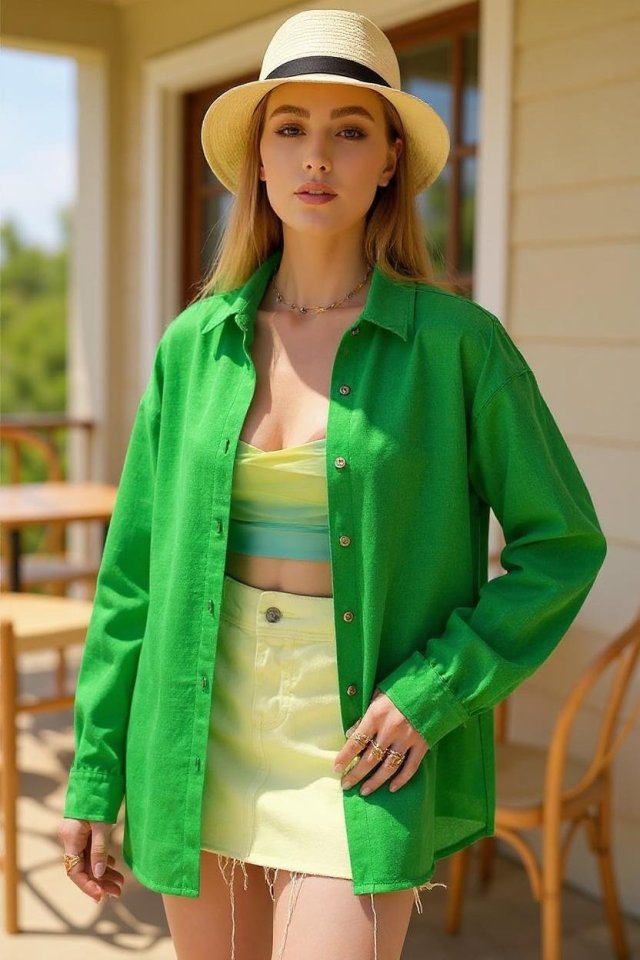 Kadın Uzun Kollu Tek Omuz Askı Detay Salaş Viskon Iki Iplik Bluz