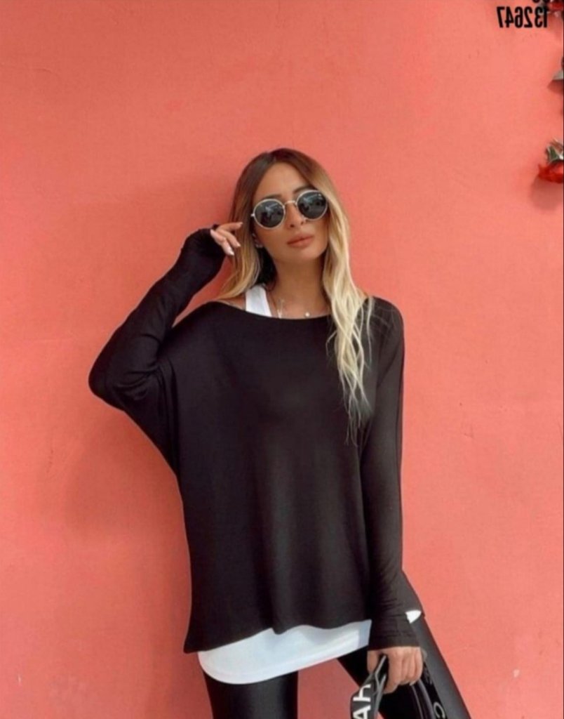 Kadın Uzun Kollu Tek Omuz Askı Detay Salaş Viskon Iki Iplik Bluz