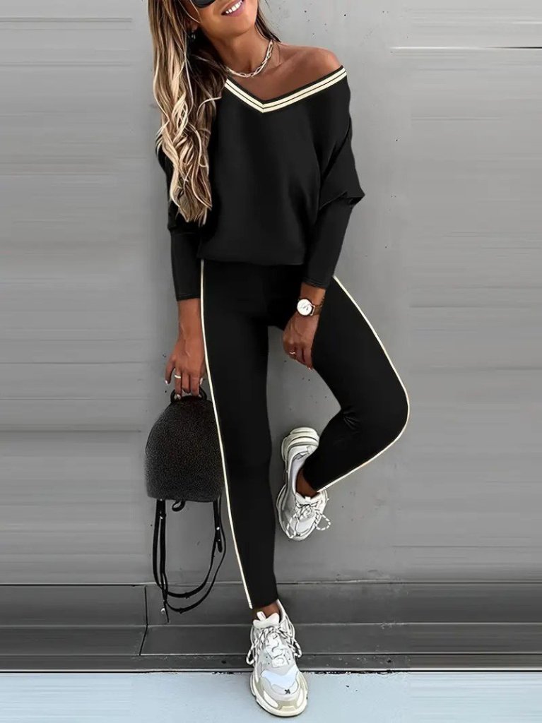 Kadın Uzun Kollu Tek Omuzu Açık Detaylı Viskon Iki Iplik Bluz Ve Pantolon Ikili Takım
