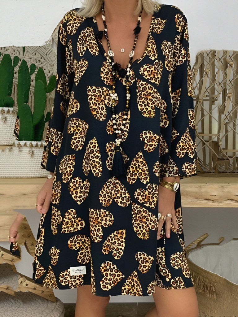 Leopar Sırt Detaylı Leopar Desenli Saten Elbise