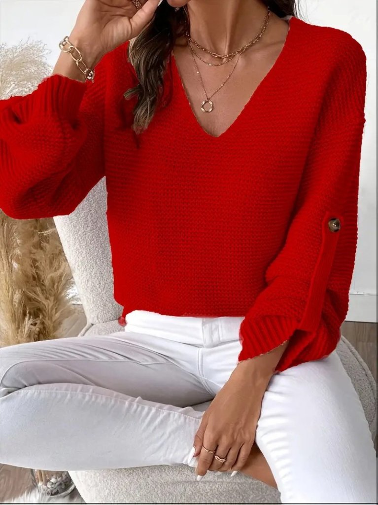 Kadın Uzun Kollu V Yakalı Düğmeli Triko Bluz