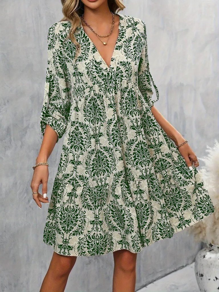 Kadın Uzun Kollu V Yakalı Fırfırlı Mini Süprem Elbise