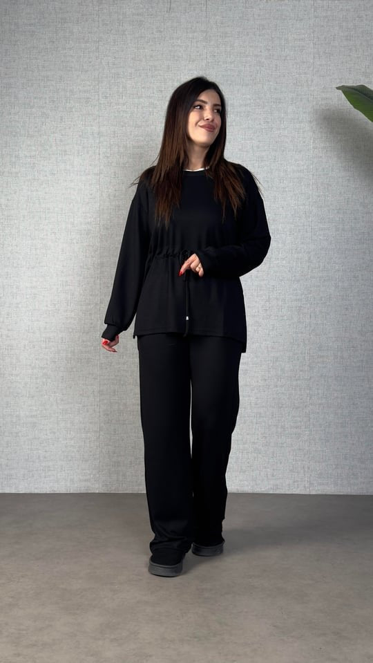 Kadın Uzun Kollu Yaka Ve Büzgü Detay Tunik Ve Pantolon Ikili Takım
