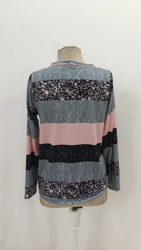 Kadın Uzun Kollu Bisiklet Yaka Desenli Viskon Iki Iplik Bluz