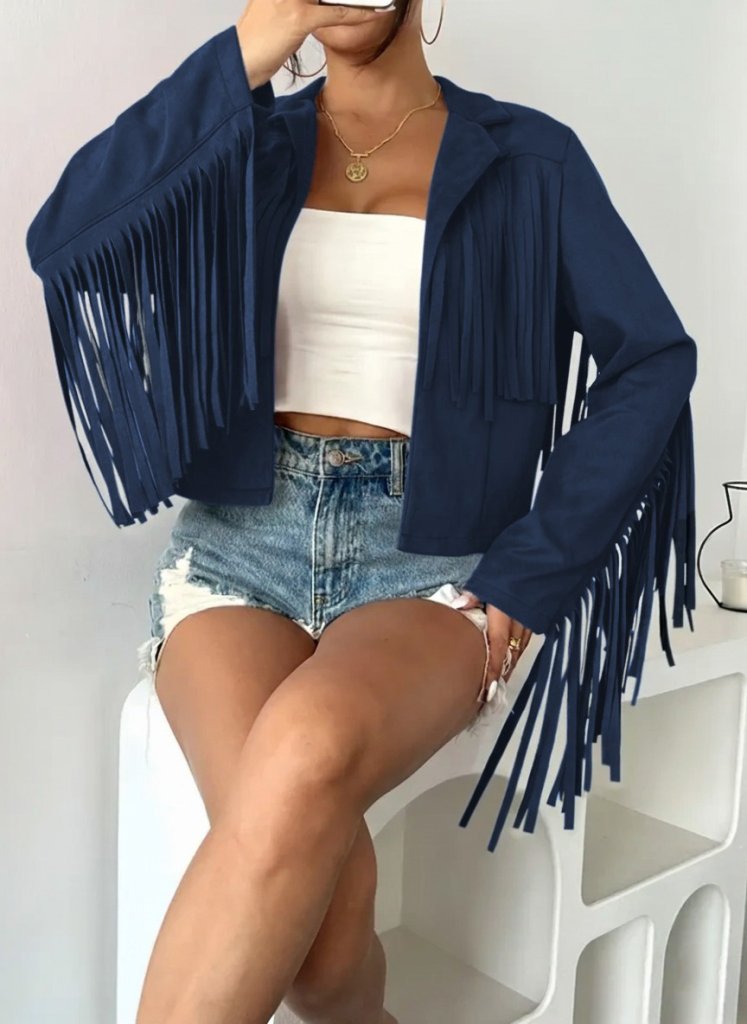 Kadın Uzun Kollu Yakalı Kısa Püsküllü Süet Ceket