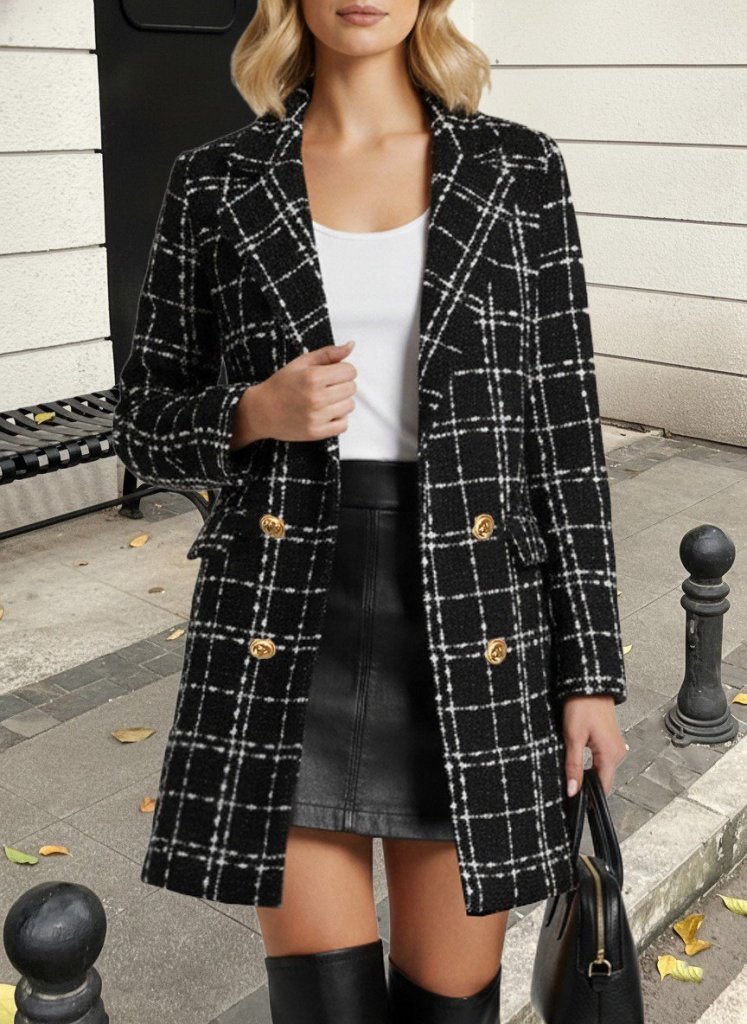 Kadın Uzun Kollu Yakalı önden Düğmeli Dokuma Ceket