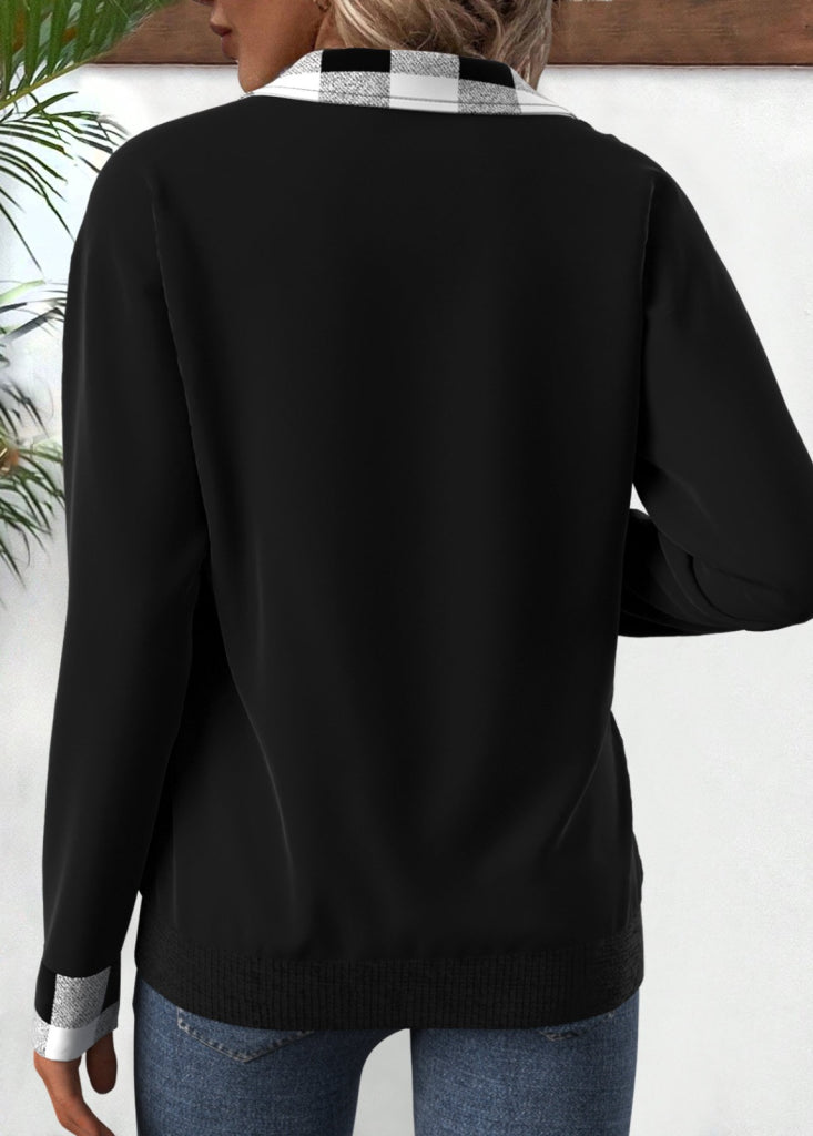 Kadın Uzun Kollu Yakalı önden Fermuarlı Ekose Detaylı Viskon Iki Iplik Bluz