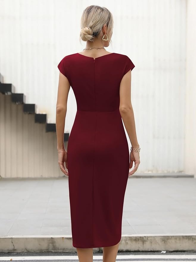 Kadın Kısa Kollu Yakadan Ve Etekten Fermuarlı Midi Viskon Iki Iplik Elbise
