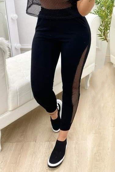 Kadın Yüksek Bel File Detaylı Dar Kesim Viskon Iki Iplik Pantolon