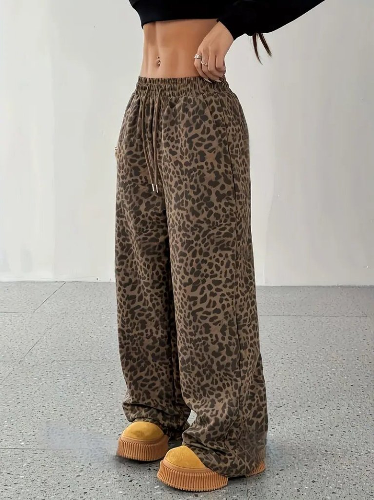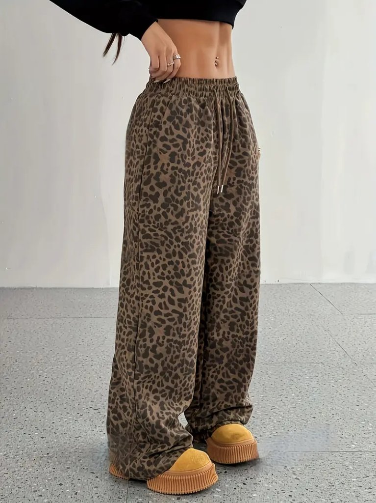 Kadın Yüksek Bel Lastikli Bağcıklı Geniş Kesim Iki Iplik Pantolon
